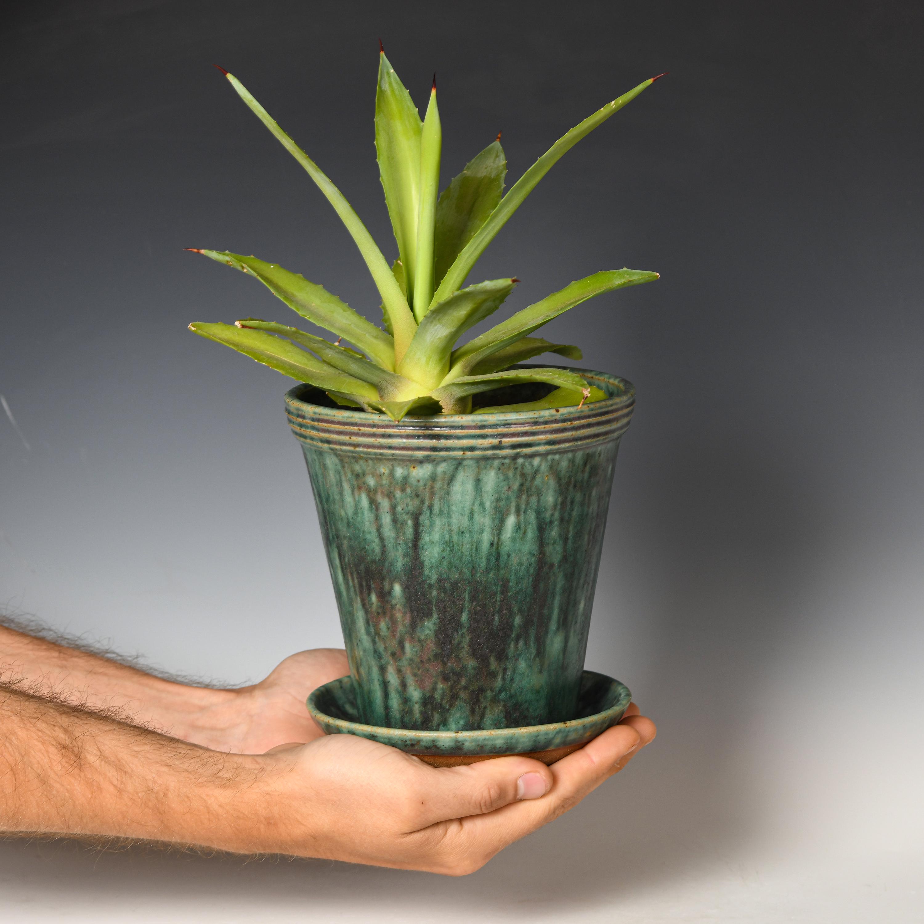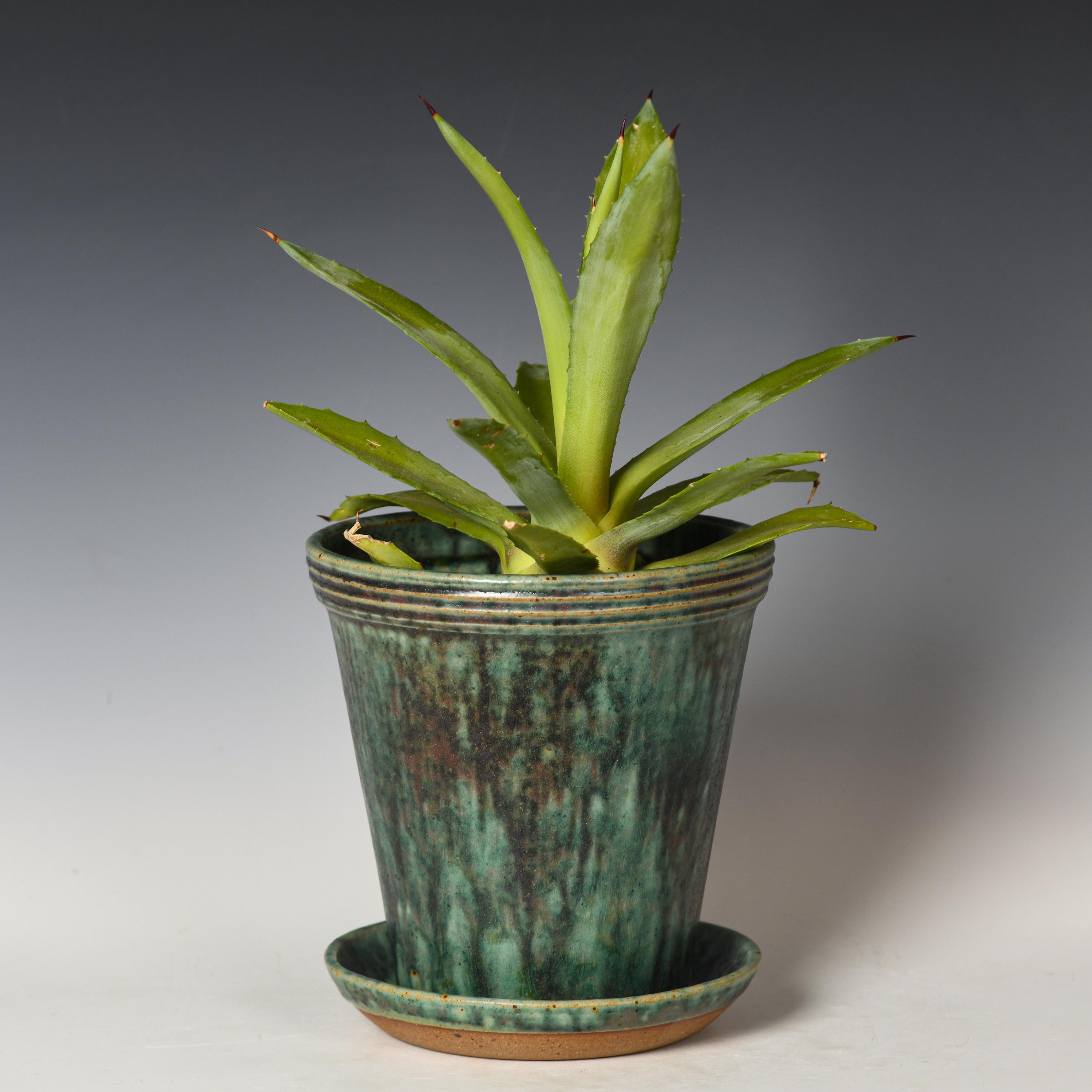 This planter has drainage holes & an attached drain dish. Ready to be potted directly into , no need for a nursery pot. Our planters are great for indoor or outdoor use.